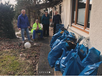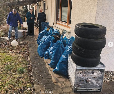 Zu den Aktiven gesellten sich noch interessierte Mithelferinnen und -helfer, die sich durch den Aufruf via Presse angesprochen fühlten und packten tatkräftig mit an. Bei bestem Wetter, ausgestattet mit Warnwesten und Handschuhen war die Gruppe (leider!) sehr erfolgreich: Ein ziemlich großer Müllberg kam dabei zusammen!